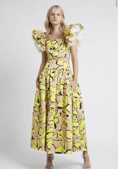 Aje Pelicano Citrus Bloom Midi Skirt & Frill Cropped Top