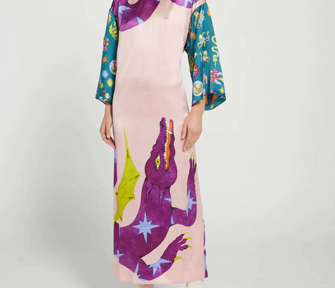 Alemais Superhero Silk Satin Midi Dress Multi Print Size 16