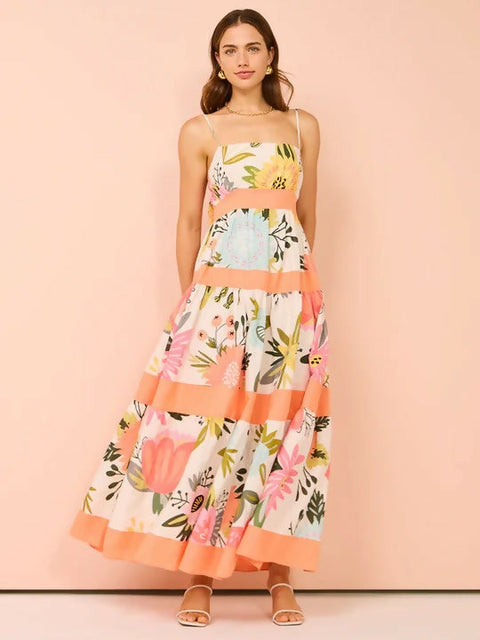 By Nicola Monet Tiered Maxi Dress In Potpourri/Melon