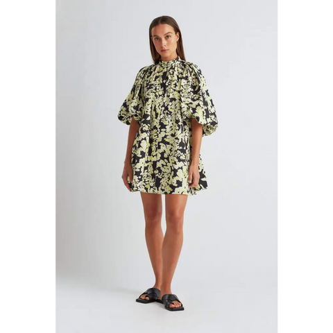 The Ellie Mini Dress in Print by CAMILLA AND MARC is made from airy lightweight cotton in a custom in-house designed print and has voluminous puffed sleeves, self snap buttons, and a self-belt to cinch in the waist or tie at the back to draw in the relaxed shape. Keep the look simple and pair with leather slides.
