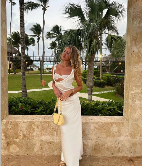 Three piece set. Includes the top, bralette and the maxi skirt. The top is a size small and the maxi skirt is a size medium to allow it to sit lower on the hips for that low rise look.