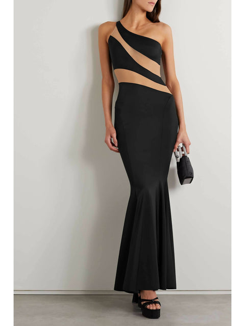 Norma Kamali Snake One-Shoulder Mesh-Paneled Stretch-Jersey Gown