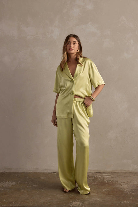 Turn heads in our Carla Satin Pant. Crafted from a lightweight satin fabrication, in this season's must-have colour - Pistachio! Finished with an encased elastic waistband and functional slant pockets, this pant pairs perfectly back with our Carla Satin Shirt for both casual days and party nights outs.