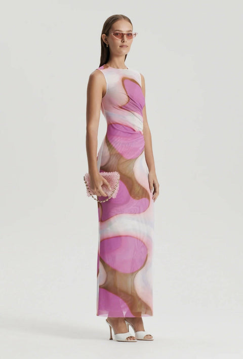 Scanlan Theodore Italian Watercolour Print Dress in Pink/Tan
