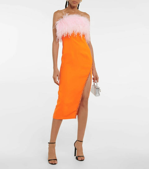 Self Portrait Orange Crepe Midi Dress With Trim