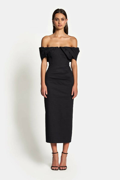 Sofia the Label Hailey Off Shoulder Midi Designer Dress Hire