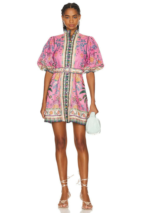 Zimmermann Ginger Buttoned Mini Dress in Pink Multi Size 1 / AU 10