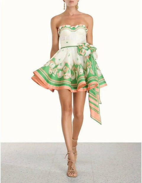 Zimmermann High Tide Eyelet Mini Dress in Green Sailboats